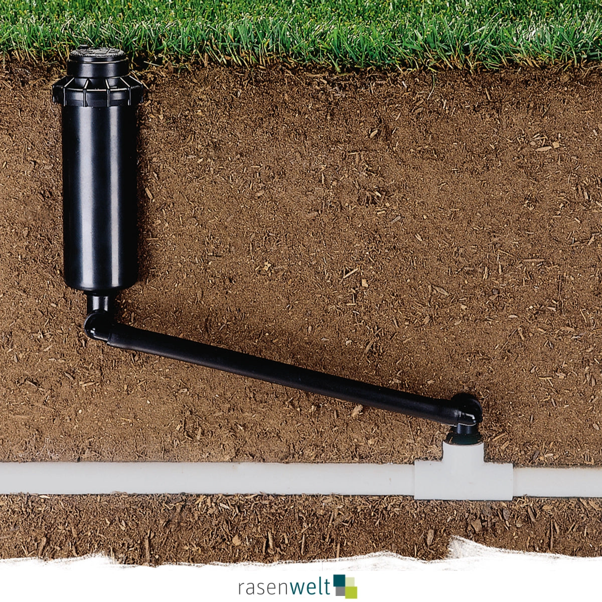 Die Drehgelenkanschlüsse sind mit ein paar Handgriffen rasch in horizontale Gewindefittings eingeschraubt und ein z.B. höherer Versenkregner kann anschließend nachgerüstet werden.
