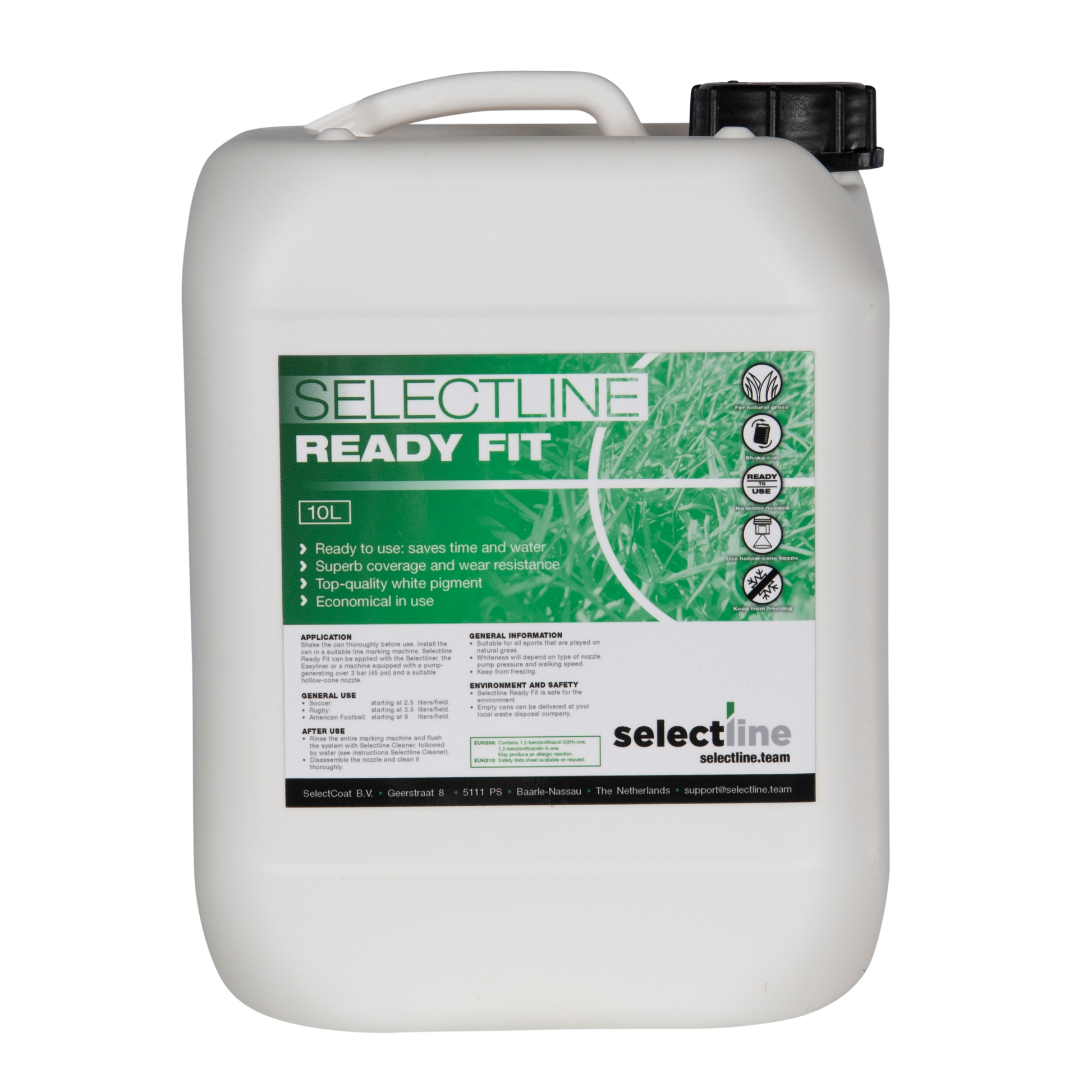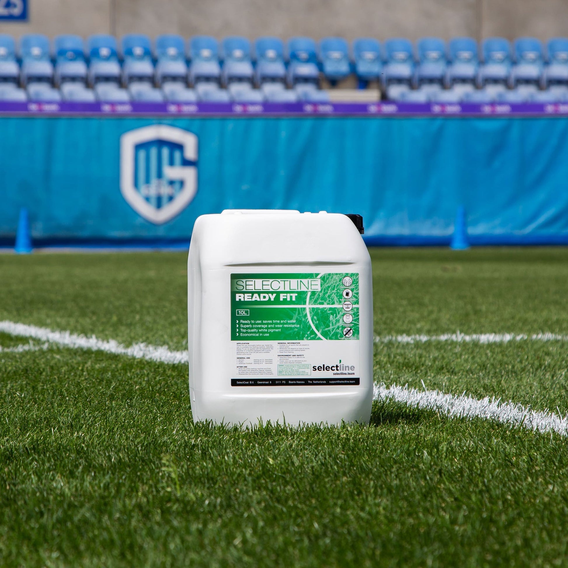 Linienmarkierungsfarbe mit extrem geringem Verbrauch. In Kombination mit ihrer hervorragenden Abriebfestigkeit ist sie eine sehr wirtschaftliche Farbe. Durch die schnelle Trocknungszeit ist sie bei vielen Spitzenvereinen eine beliebte Sportplatz-Markierungsfarbe. Ein Verdünnen mit Wasser ist nicht erforderlich, da Selectline Ready Fit sofort einsatzbereit ist.