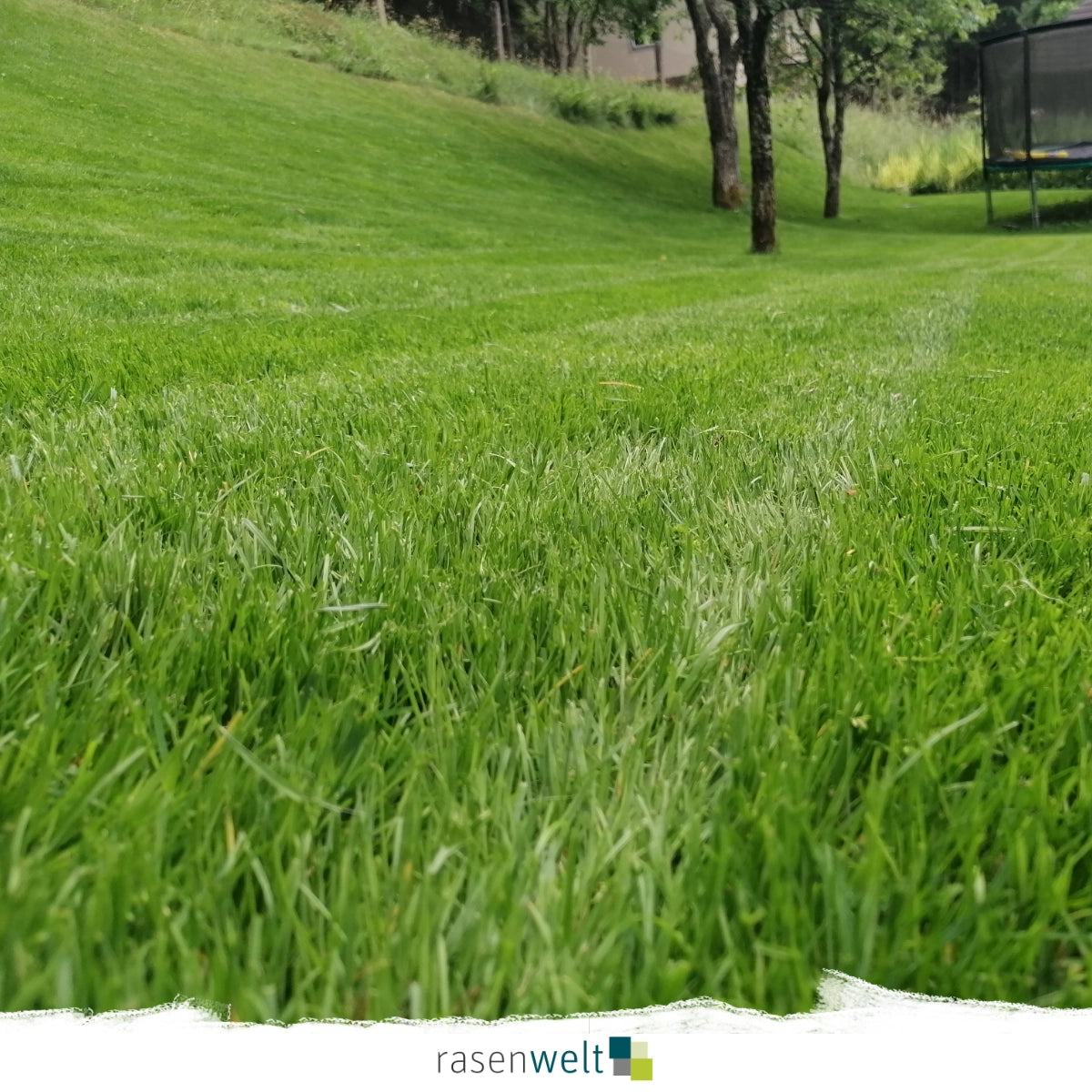 Schattenrasen mit Poa Supina für eine strapazierfähige und dichte Rasenfläche selbst in schattigen Bereichen.